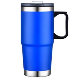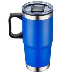 Select from 4 bold colors and add your logo! Drink in all the exposure and publicity you can with these cool and colorful travel mugs. This 24oz. travel mug has a stainless steel inside with plastic liner/plastic handle.