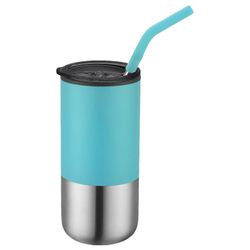 Grab this Lightweight 16oz. tumbler and hit the road! Stainless steel tumbler with plastic liner will keep your drinks cold for hours! Sip along the way with its fun stainless steel straw with a matching colored silicone comfort tip.