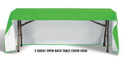 DESCRIPTION Step onto the scene, and your brand will be seen! Check out this recyclable plastic step and repeat table runner that's available in either table drape or banquet roll size that display your company's logo, slogan, symbol or trademark. This 132" x 65" wrap is made of 1.4 mil recyclable plastic and fits most 6' tables. A great fit for events large and small, Add your school, sports team, organizational or company logo, emblem or message through our screen print method to customize.